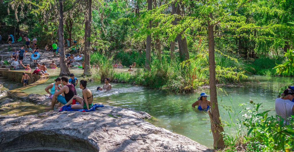 Krause Springs is a well-known camping & swimming site located in the beautiful Hill Country of Texas. It is located in Spicewood, Texas approximately 30 miles west of Austin. The 115 acre property is listed on the National Registry of Historical Sites and has been privately owned by the Krause Family for over 50 years. Krause Springs has many natural sites to explore. There are 32 springs on the property, and several feed the manmade pool and the natural pool which flows into Lake Travis. Location: Spicewood, Texas