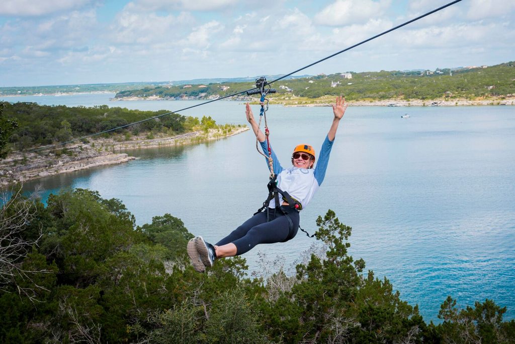Zipping across incredible Canyons and Lake Travis inlets, your Lake Travis Zipline experience offers unmatched Thrills and Chills! The 3 hour Adventure has 5 zips ranging from 250 feet to over 2800 feet. While waiting between each zip, you will enjoy amazing views of Lake Travis and the Texas Hill Country. Your professionally trained tour guides offer education and fun throughout your challenging hikes and nature walks. For the Grand Finale, Imagine launching off a Cliff 20 stories high and zipping over 2800 feet across beautiful Lake Travis. For your safety we have a 70 pound minimum weight requirement and 250 pound maximum weight limit. Location: Austin, Texas