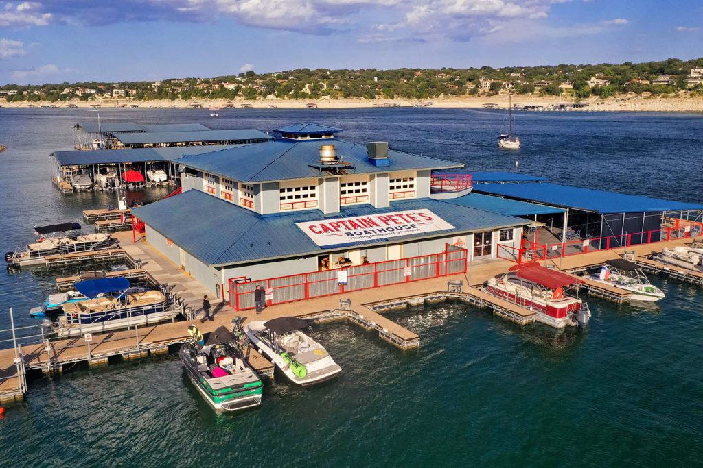 It’s always more fun on the water…especially when you’re enjoying cold frozen cocktails and some of the best food Lake Travis has ever seen. Captain Pete’s Boathouse is the premier floating restaurant and bar on Lake Travis, located at Point Venture right out on the floating pier. By land or by lake it’s like taking a vacation in your own backyard! Sit out on the patio or inside at the bar. Our laid-back vibes, tropical drink menu, and amazing food will make Captain Pete’s your go-to lakeside hangout. Try the tacos, burgers and sandwiches, footlongs, plus delicious seafood and catfish platters on our menu. If you’re on a boat, stop by our Ship’s Store for gas and snacks. Bring the kids, too. They’ll love feeding the lake’s monster catfish off the marina pier!