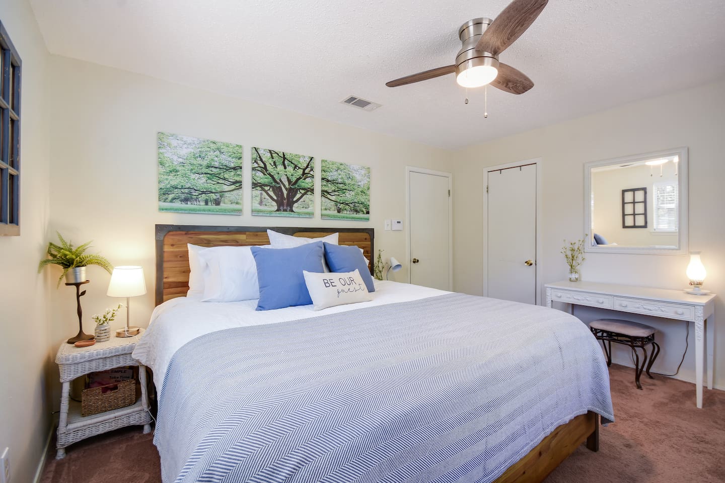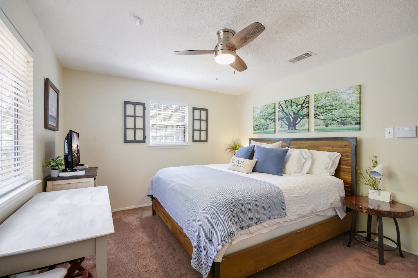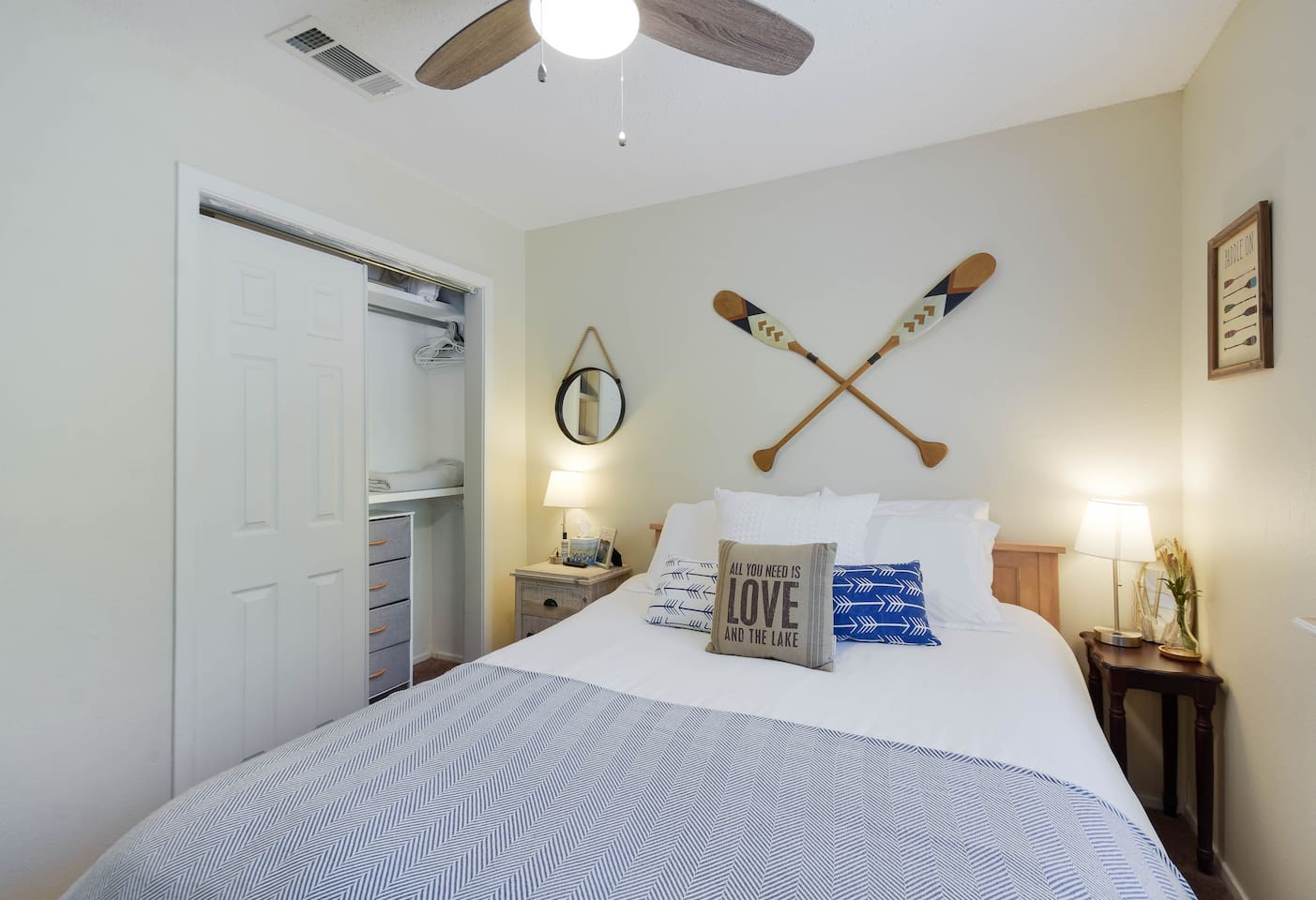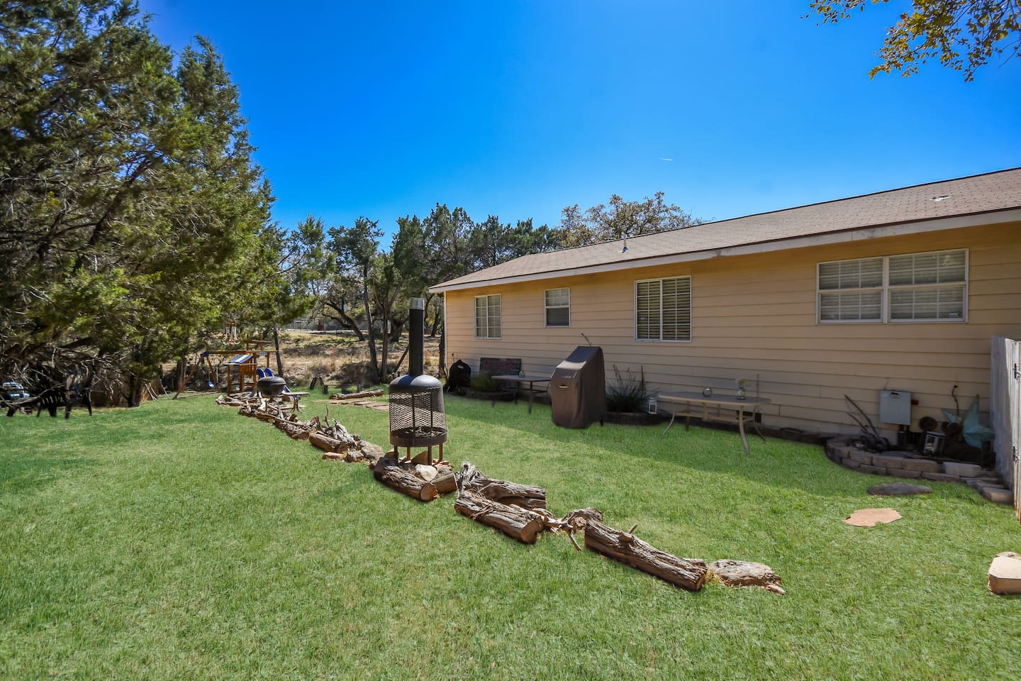 Tucked away in a quiet, wooded cul-de-sac amongst towering oaks in the Texas Hill Country, is our Lazy Lakehouse. Centrally located in Lago Vista and only a 2 – 5 minute drive to lakefront parks, pool, fitness, marina, golf, and Lake Travis access. Our cottage has 3 bedrooms, 2 baths, sleeps 6, and has a white picket fenced yard that's shaded and great for children, pets, games, and all around family fun. Feed the deer, relax on the porch, and create lasting memories with family and friends!